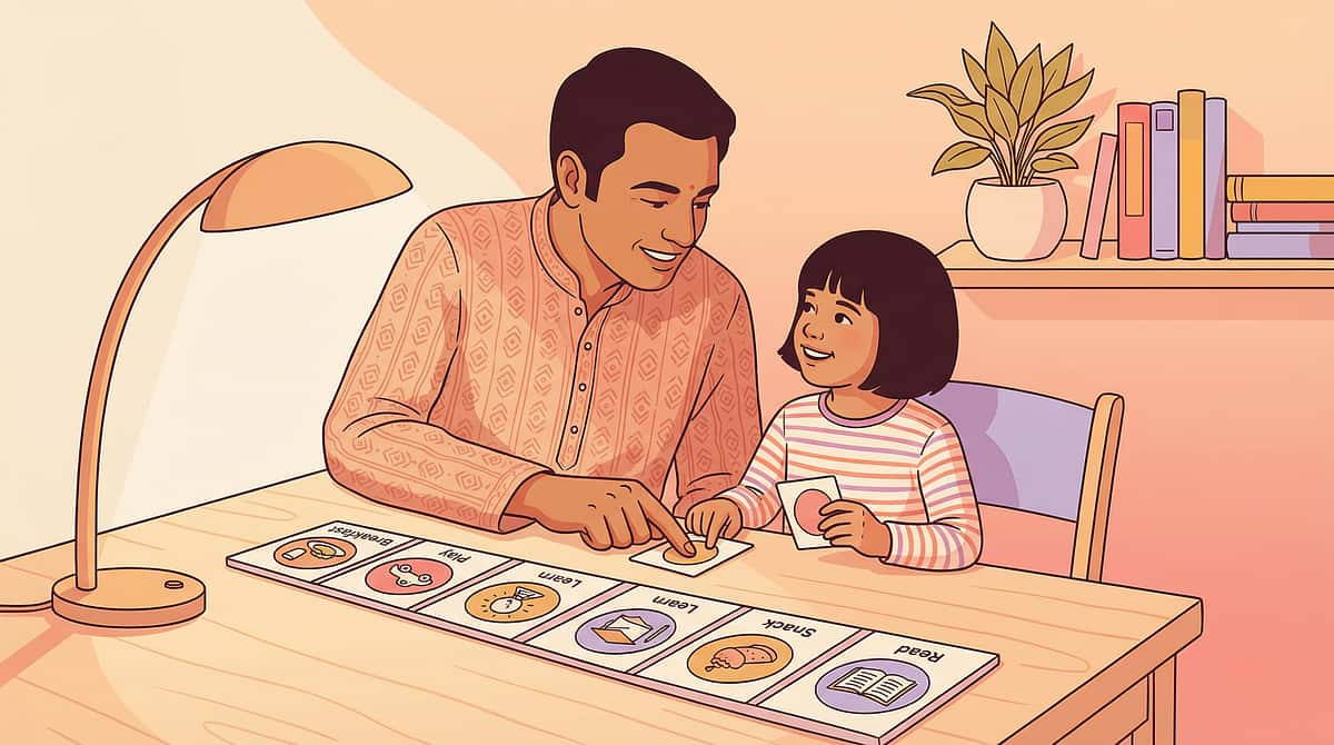 ❓ How do I explain the visual schedule to a child who can't read yet?