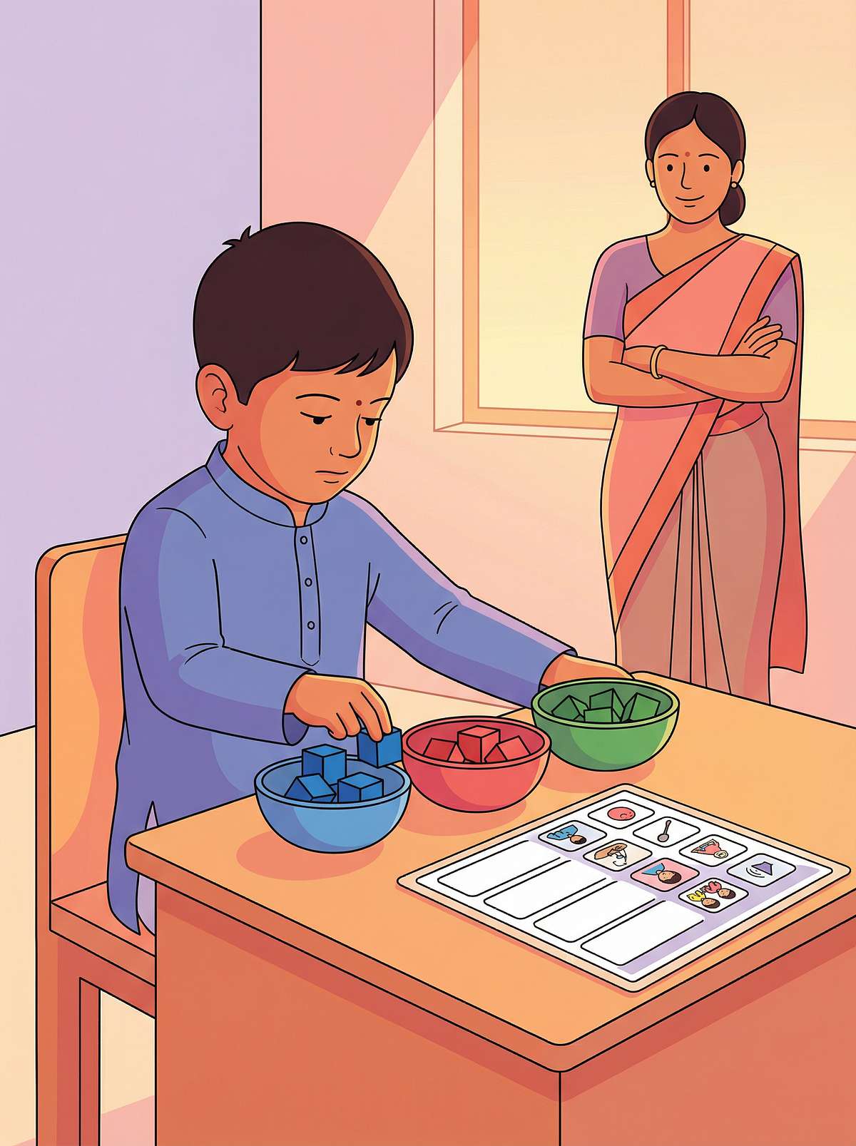 The foundational cognitive operations. Matching: "This is the SAME as that." Sorting: "These BELONG together." Every higher cognitive skill builds on matching and sorting — categorisation, reading, mathematics, and science all rest on these foundations. And crucially: these are often ASD strengths — leverage them.