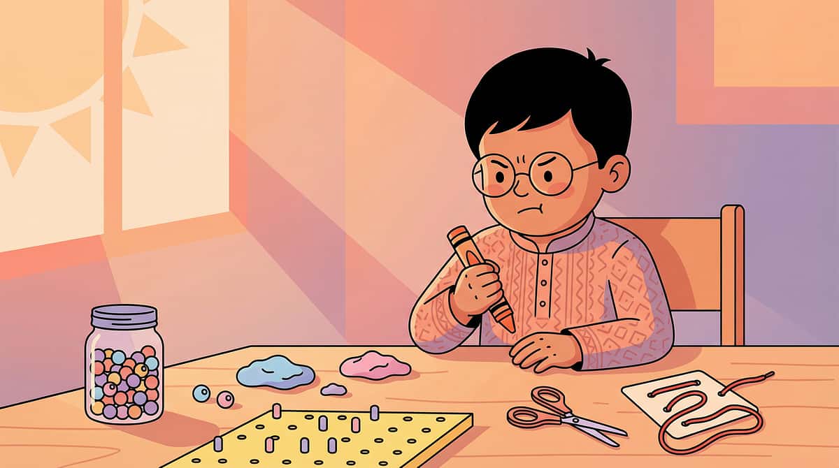 Provide predictability and structure around the fine motor session — reducing anxiety and increasing engagement